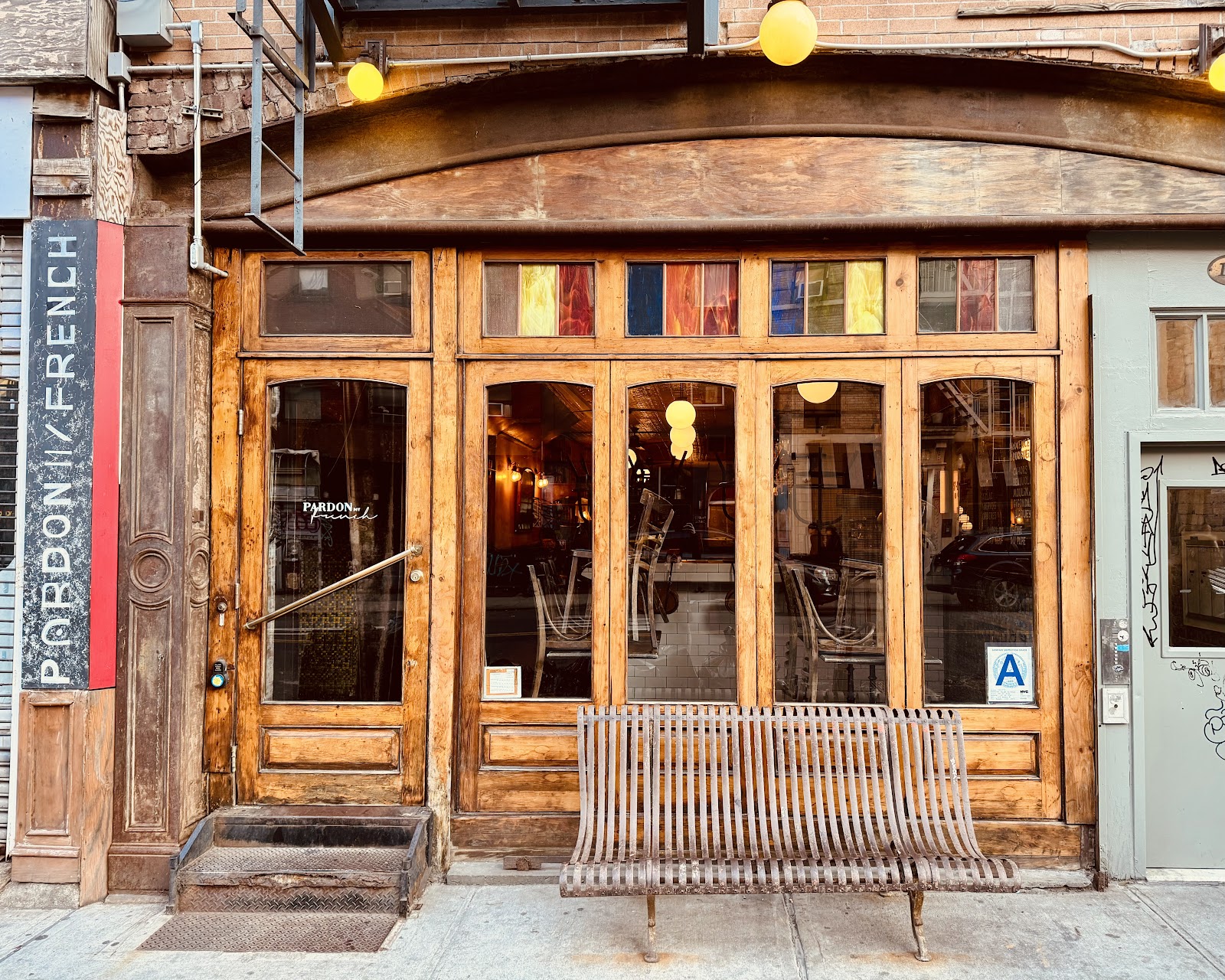 Alphabet City Parisian bistro with a cozy retro bar and back garden seating.