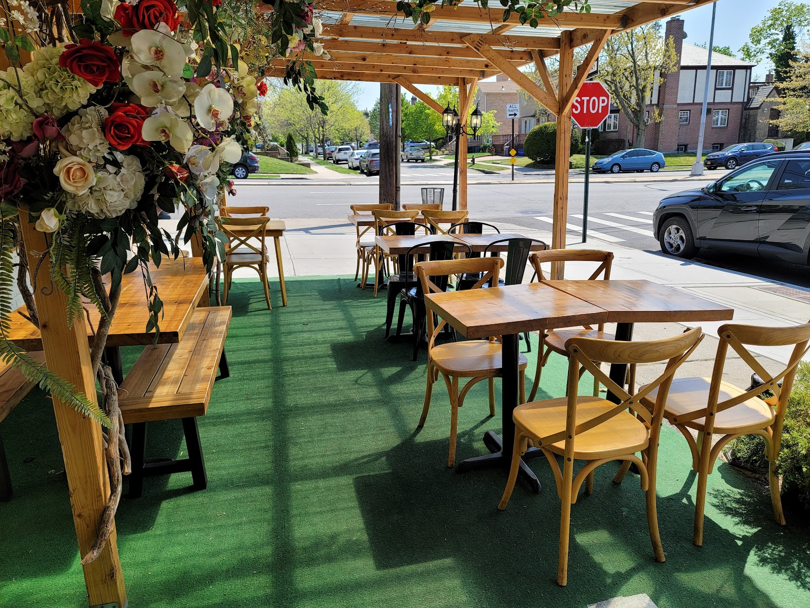 Cozy Fresh Meadows pasta shop with comfort plates, wine, and a dog-friendly patio.