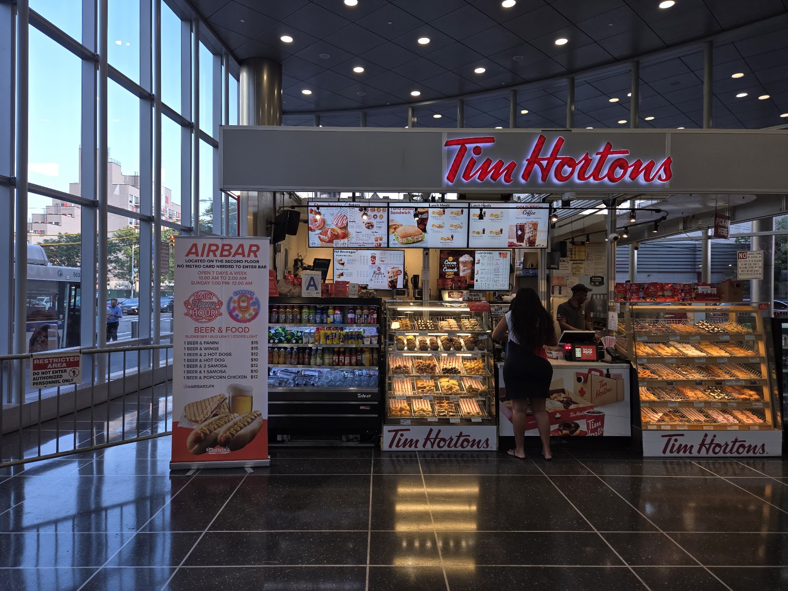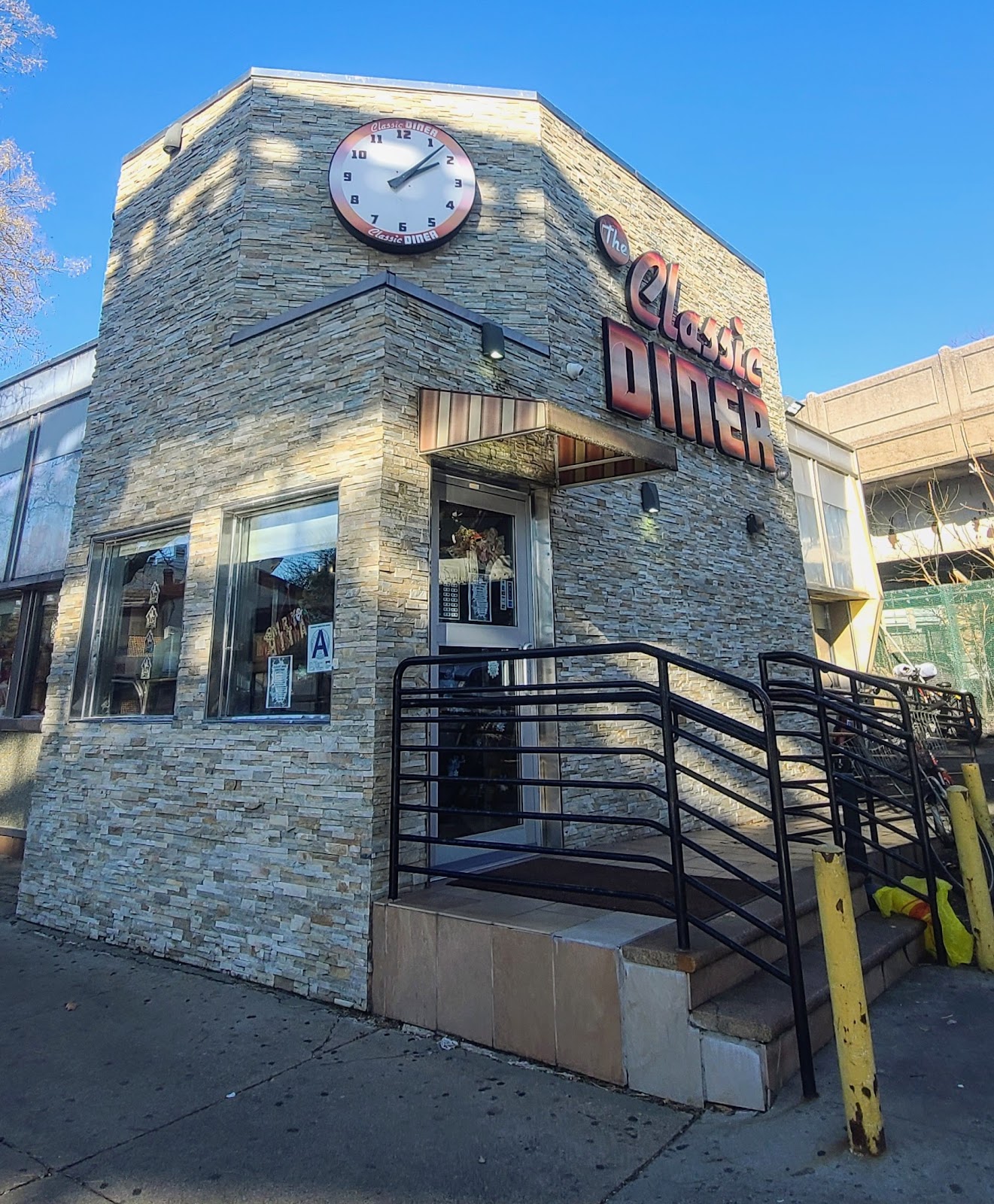 Contemporary Queens diner with counter stools, great coffee, desserts, and late-night comfort food.