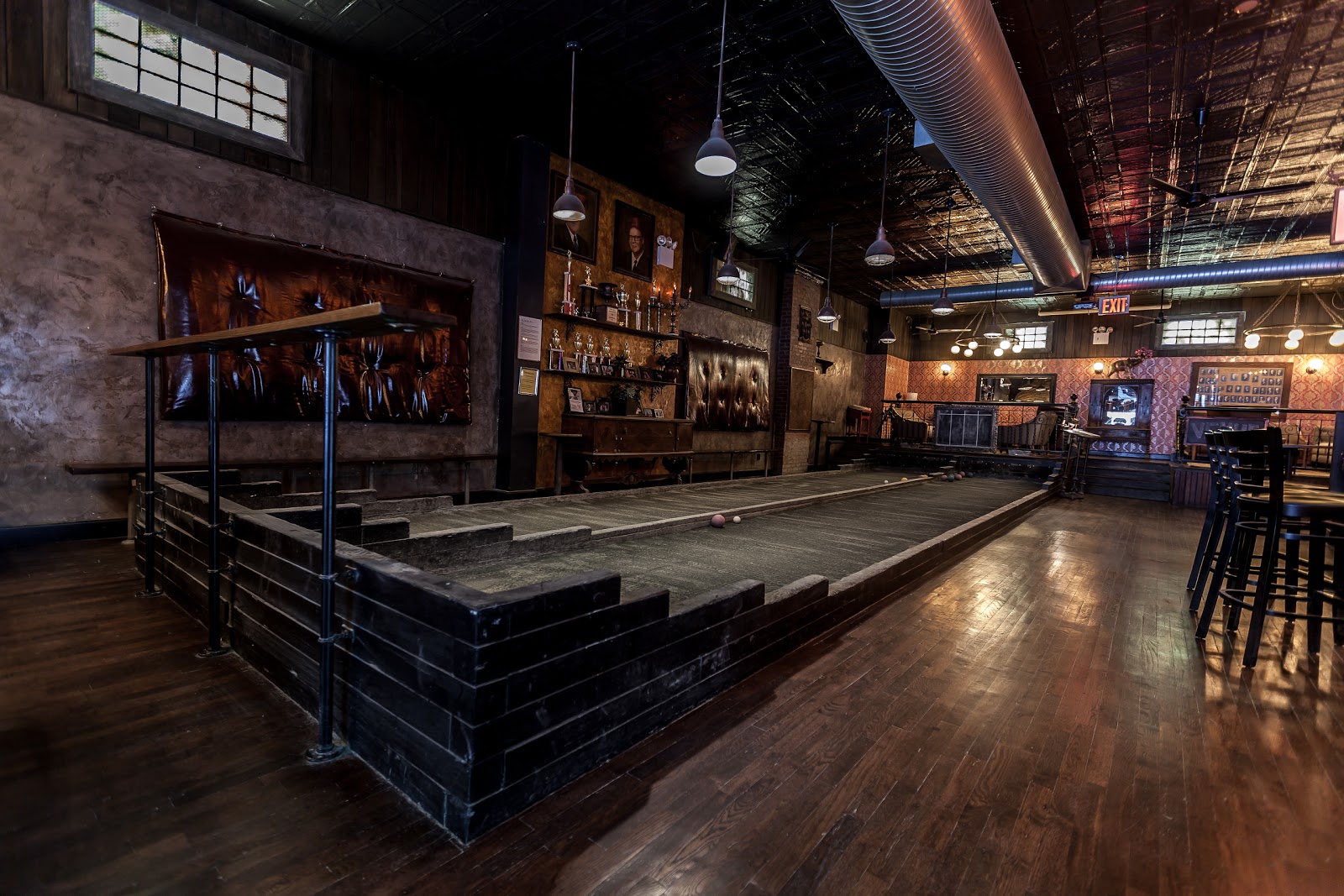 Sprawling Park Slope bar with indoor bocce courts, a cozy library-themed front room, a fireplace, and a basement music venue hosting comedy and live shows.
